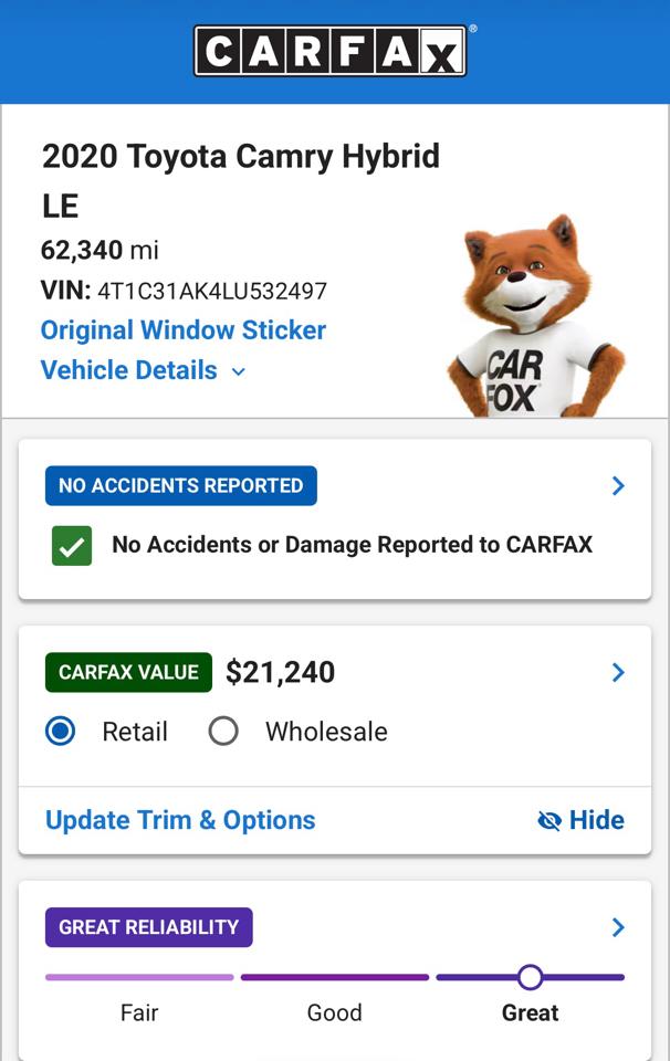 Message: Thought you might be interested in this 2020 Toyota Camry Hybrid.